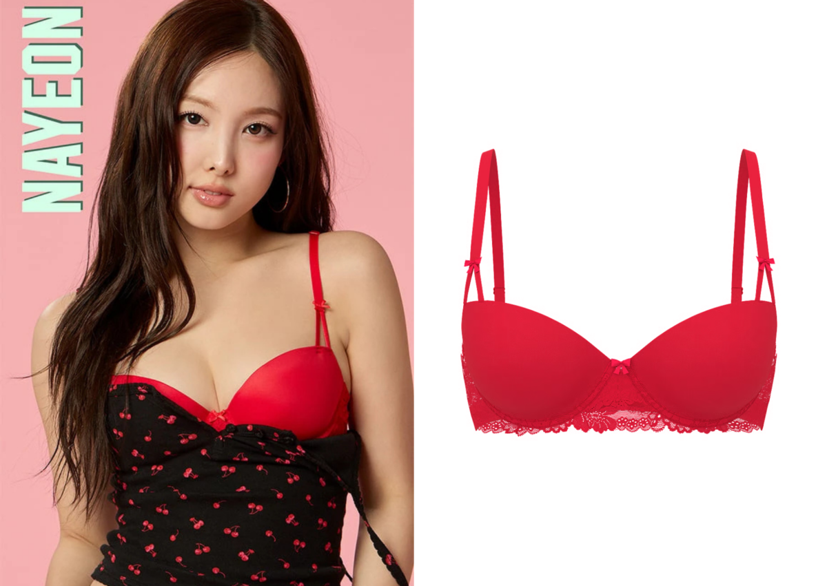 娜璉以一件短版櫻桃背心搭配「紅色鋼圈內衣」,完美示範了什麼叫美式復古甜心,刻意露出紅色內衣上緣,這份層次感關鍵在於 Forever Stretch Wink 蕾絲,不需要大面積裸露,光是下緣那圈別緻的蕾絲細節,就在舉手投足間充滿吸引力。