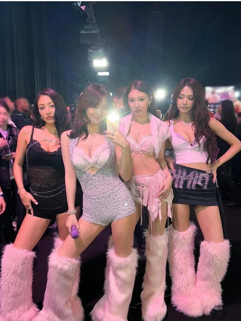 當時志效身穿黑色豹紋蕾絲薄紗馬甲內衣,既狂野又火辣;娜璉以全身粉色造型亮相,展現甜美又不失純慾感的氛圍;Momo 則以灰色豹紋連身裙亮相搭配粉色內衣,好身材展露無遺,默契穿上粉色毛絨靴;子瑜上身選擇紫色內衣搭配粉色小背心,下身穿黑粉色短裙,是難得的性感火辣尺度,連帶子瑜同款內衣當時火速銷售一空,這次四人再次穿上 PINK 系列演繹全新形象大片,再度成為熱議話題!