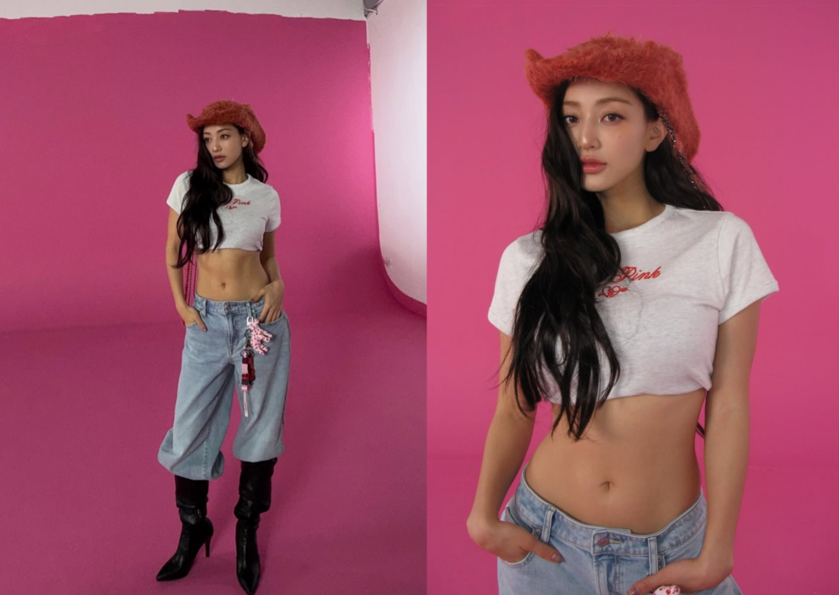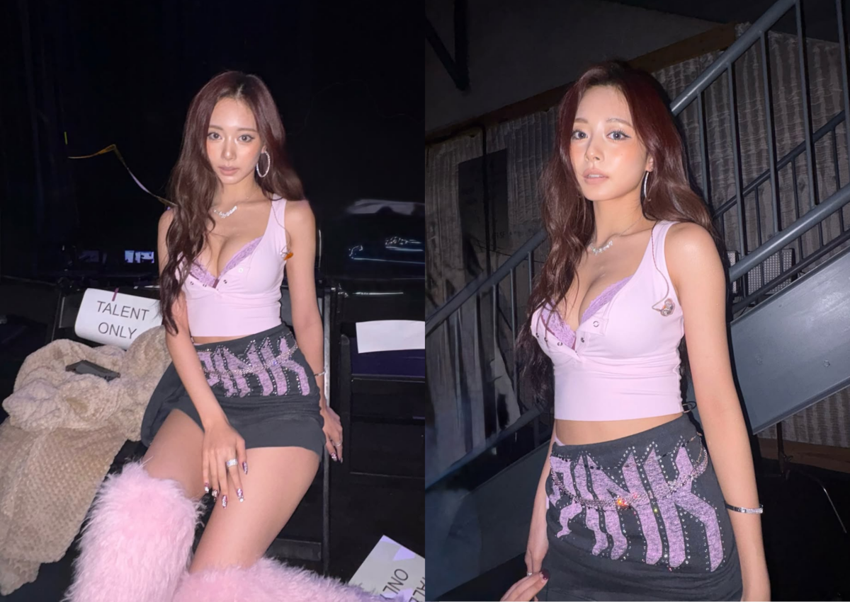 志效這套簡直是甜酷女孩的教科書,簡單穿上印有「Love Pink 」的 短版 T-Shirt 加上毛絨帽,大方露出緊實的腹肌線條,不強調過度裝飾或裸露,而是用自信的姿態穿出美式街頭的力與美,帥得讓人移不開眼。
