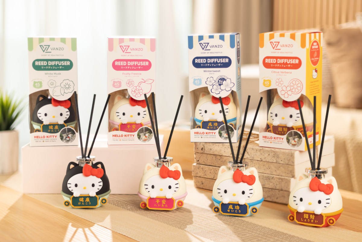 每天回到家,最療癒的瞬間就是聞到熟悉的香氣,讓整天的疲憊都一掃而空!馬來西亞人氣 No.1 的健康香氛品牌 VANZO,這次首度攜手全球最具人氣的經典角色 Hello Kitty,正式推出【Hello Kitty 招財貓居家香氛】系列!這不只是一款香氛,更是一份獻給生活的溫柔心意,讓 Kitty化身守護神,為妳的日子添一點剛剛好的小幸運 。