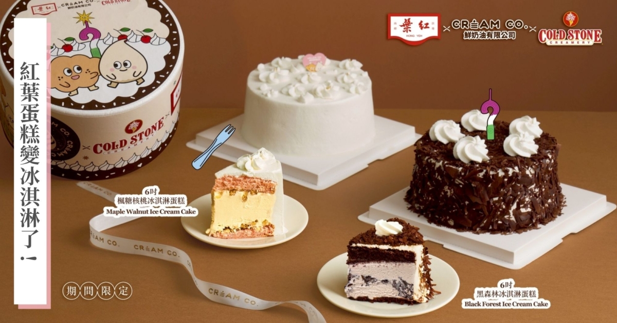 甜點界最強聯名!紅葉蛋糕、CREAM CO. × COLD STONE 推出「冰淇淋鮮奶油蛋糕」,黑森林、楓糖核桃限量開搶!