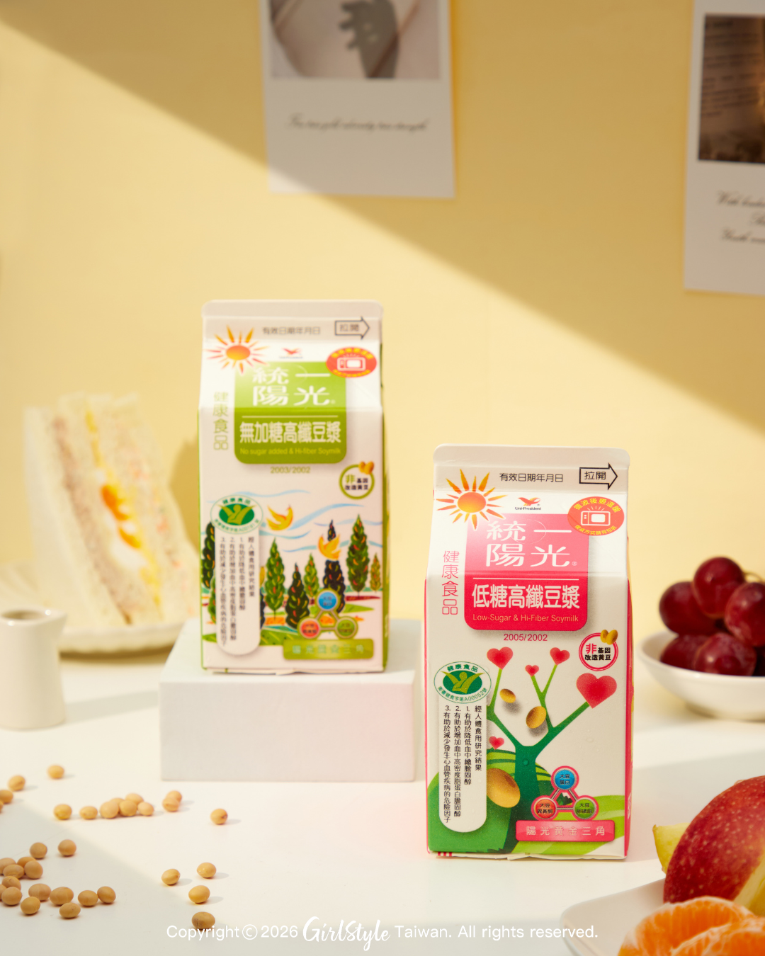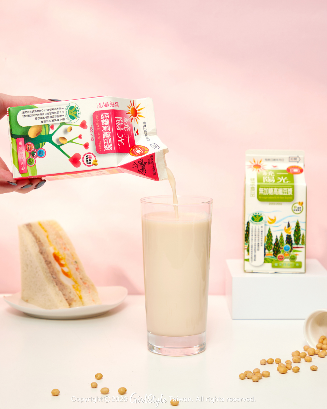 統一陽光高纖豆漿系列很貼心,準備了兩款選擇,滿足不同時刻的妳: