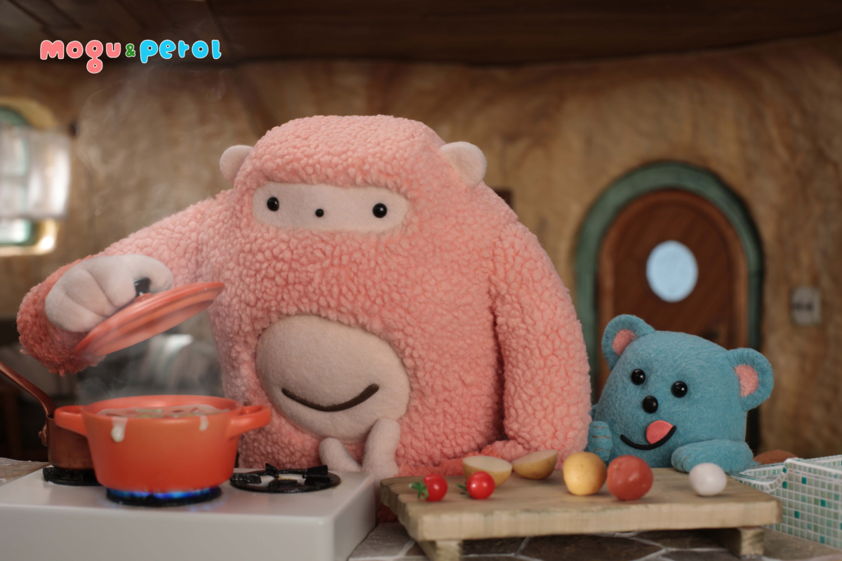 《莫古與佩羅》(Mogu & Perol)由日本定格動畫大師合田經郎親手操刀,故事設定在被地圖遺忘的奇幻新月形小島「森森島」,描繪兩位個性截然不同的好友——溫和害羞、熱愛自然的粉紅怪獸莫古(Mogu),與誕生於火山、充滿好奇與活力的淺藍生物佩羅(Perol)。劇情圍繞兩人在樹屋廚房的烹飪日常、森林探索與與鄰居互動,傳遞「友誼、多元、相聚的喜悅與創造力」等核心價值,並以「沈思與停頓」的敘事節奏,幫助兒童培養感受力與專注力。