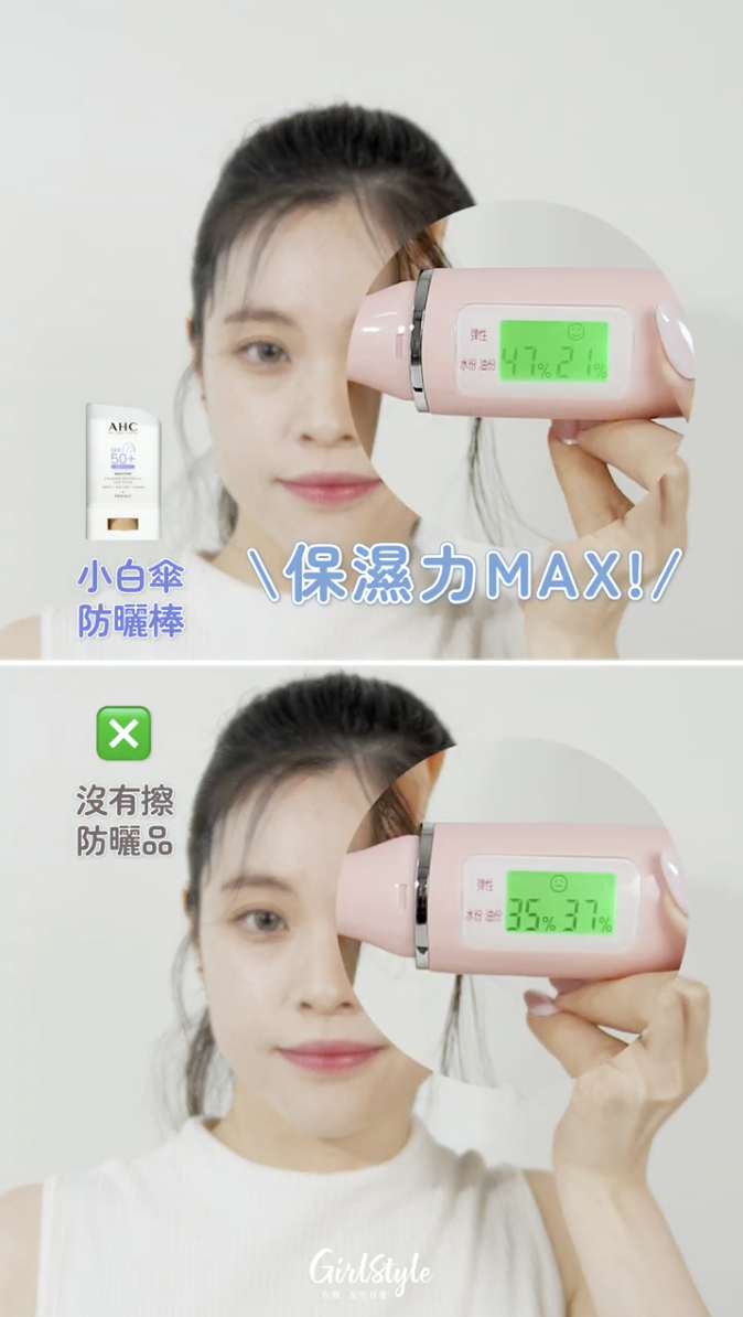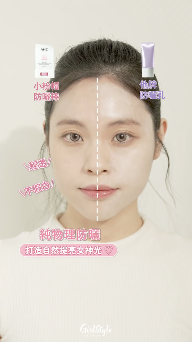 看完是不是很心動?與其羨慕別人的冷白皮,不如趕快入手 AHC 防曬棒,隨手一抹,妳也能在陽光下優雅地閃閃發光!♡