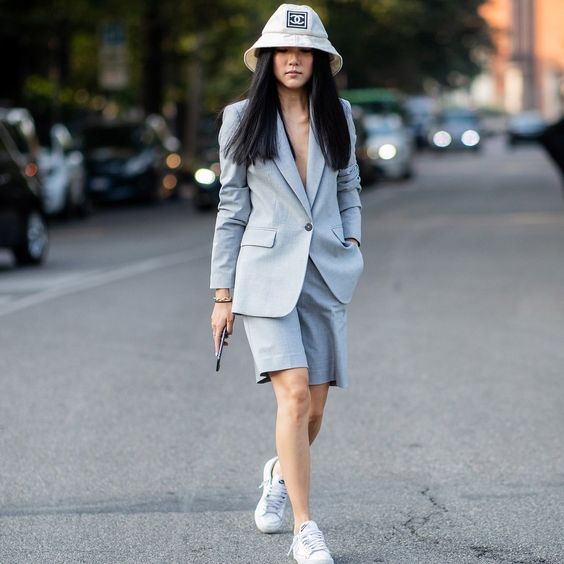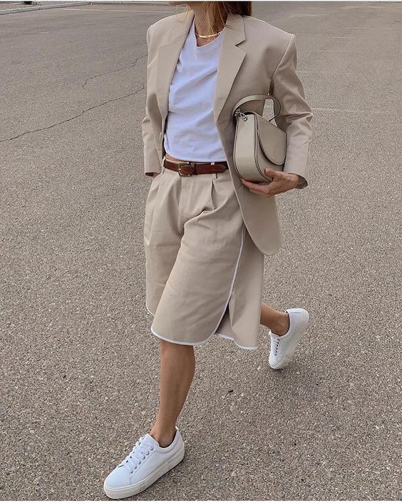 過去,同色系套裝是提升品味的關鍵,今年則是可以把長褲換成短褲搭配,不僅會有較為活潑的氣息,在搭配上更加容易。