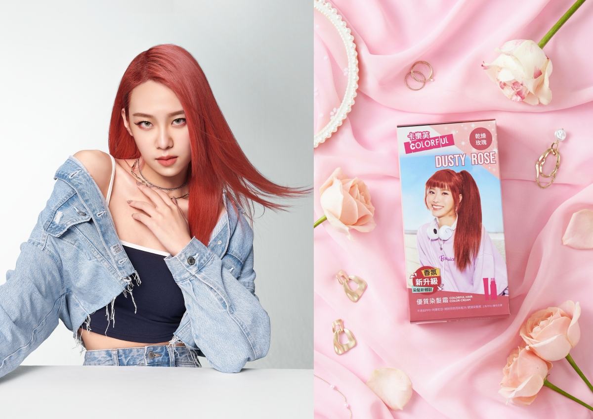 再來說到氣勢滿滿的髮色,怎麼能少了紅色呢!但亞洲人想染紅可不是那麼簡單,一不小心就容易顯黃暗沈,但這次也是新色之一的「乾燥玫瑰」,完美定義了紅髮色會有的氣場跟回頭率!快來看看席子淇的乾燥玫瑰髮色!完美結合紅與粉的霧感色澤,能讓皮膚顯白透亮,感覺氣色很好又非常搶眼,讓所有人都目光都會停留在妳身上,適合喜歡與眾不同的妳!就是要高調!
