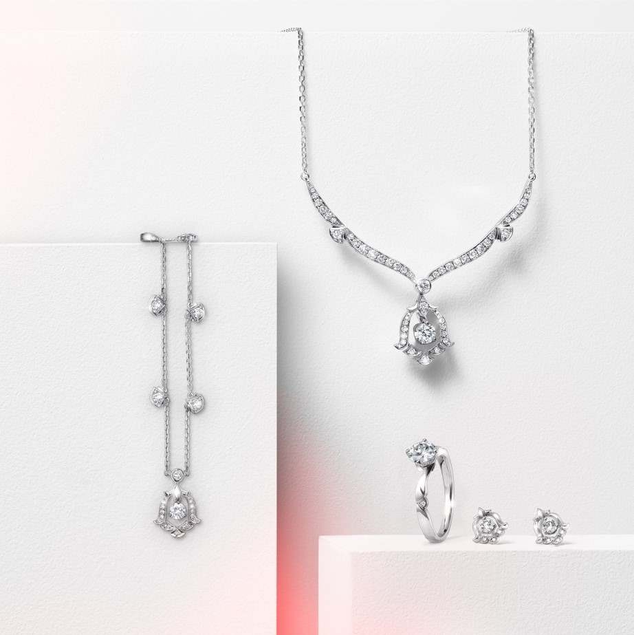 為迎接全新宣傳廣告,矚目呈獻「周大福鈴蘭」系列美鑽珠寶,頌揚真愛的奇妙力量。系列以鈴蘭花的優雅美態為靈感,以精心鑲嵌的美鑽組出靈動精緻的枝葉線條,把鈴蘭的脫俗韻味活現眼前。高雅迷人的鑽飾象徵純潔和幸福,為不渝真愛送上摯誠祝福。