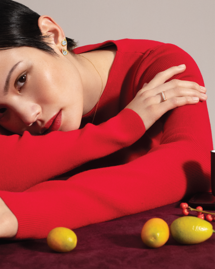 美國鑽石品牌Hearts On Fire發佈2024年首個新品暨限定系列 — LU。LU拉丁語意中有一解釋為Light(光),呼應鑽石令人如痴如醉的閃光、亮光與火光。而LU又似中文「露」之發音,汲取晨露輪廓作為靈感,以捕捉黎明破曉的曙光於露水之中的意境,呈現此系列的純淨象徵。而適逢Lunar New Year的穿新衣戴新帽傳統,品牌在新品形象中更一舉發想了LUCKY YOU概念,將LU系列打造成新年走春的時尚幸運符。形象中見模特兒穿著喜氣紅衣與LU系列,搭配茶具、金桔與發財紅果,呈現春節情境,靜物更也納入了吉祥寓意的橘子入鏡,打造出鑽石亦可象徵幸運能量的另一面向。