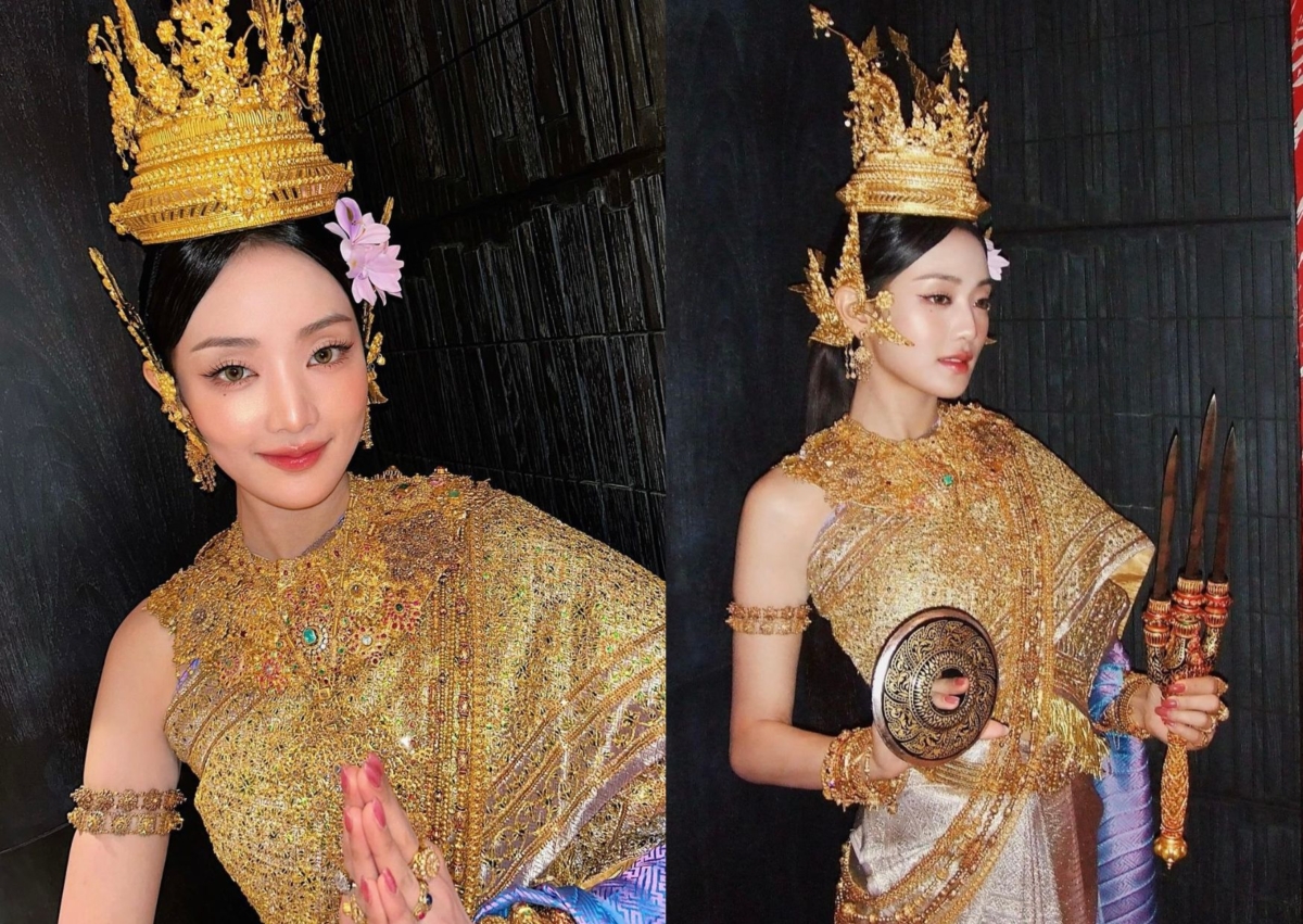 人氣韓團(G)l-DLE 成員Minnie被選為「宋干女神」出席世界级節慶泰國潑水節慶典,Minnie 穿上一身當地傳統服飾,金色布料圍繞在身上、頭戴泰國皇室皇冠、手上也帶滿金銀珠寶配件,氣質與美貌兼具,舉手投足間都宛如泰國小公主一般,展現出令人稱羨的迷人魅力!因為平時主要都在韓國演藝圈活動,很少有機會看到她穿上傳統泰國服飾,這身造型一釋出立刻在網路上引起熱烈回響,粉絲們大讚:「看起來就像真正的公主,太適合了!」、「簡直太優雅了!」、「沒有瀏海的樣子超級美!」、「泰國的服飾真的很華麗,Minnie穿起來格外吸睛」、「她真的是女神!」。