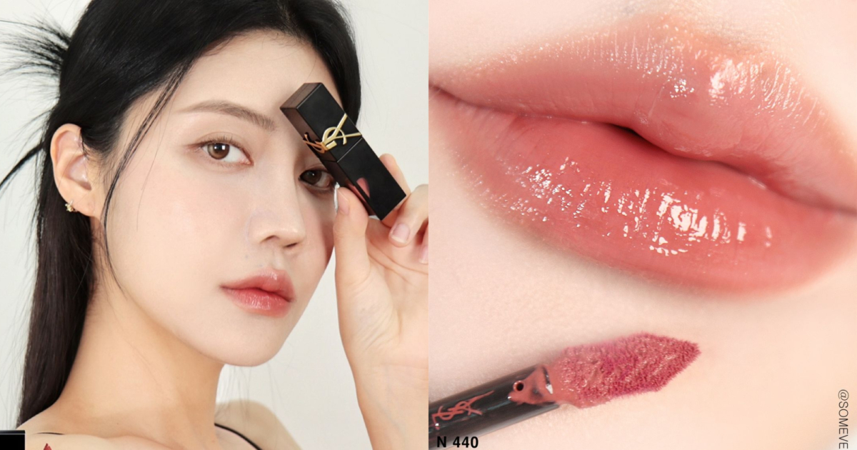 DANIELLE擦上YSL BEAUTY全新【奢華印記鎖心光唇釉】#440 玫瑰香檳,一甩甜美造型,扎起俐落馬尾,直接引爆話題!玻璃光澤唇超耀眼,立體飽滿的3D玻璃光,沒有唇紋、超立體、超澎潤,完美雙唇像是AI生成!「光唇釉」瞬間成了獵心武器、狙擊美妝鐵粉的心,已在小紅書和日韓IG大轟動!