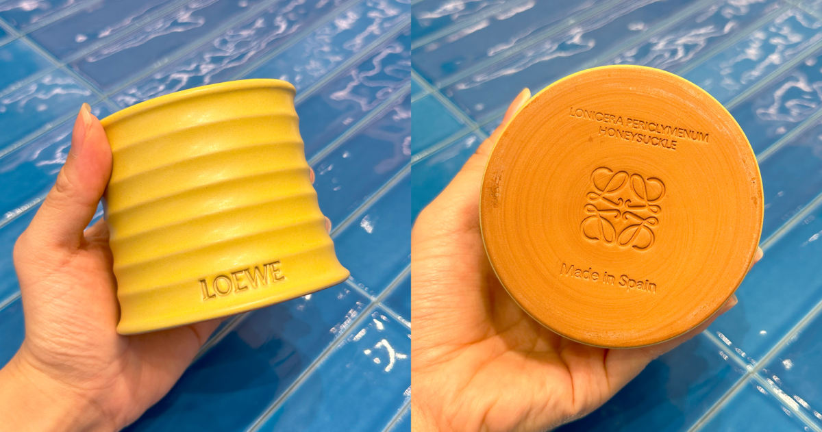 LOEWE的每一顆蠟燭都是純手工製作,獨一無二的存在也讓蠟燭系列成為消費者買單的常客,《金銀花香氛蠟燭》花香中蘊藏著淡淡蜂蜜香氣,就像走在乾淨清爽的盛開花田中,空氣中瀰漫金銀花的陣陣香氣十分療癒。