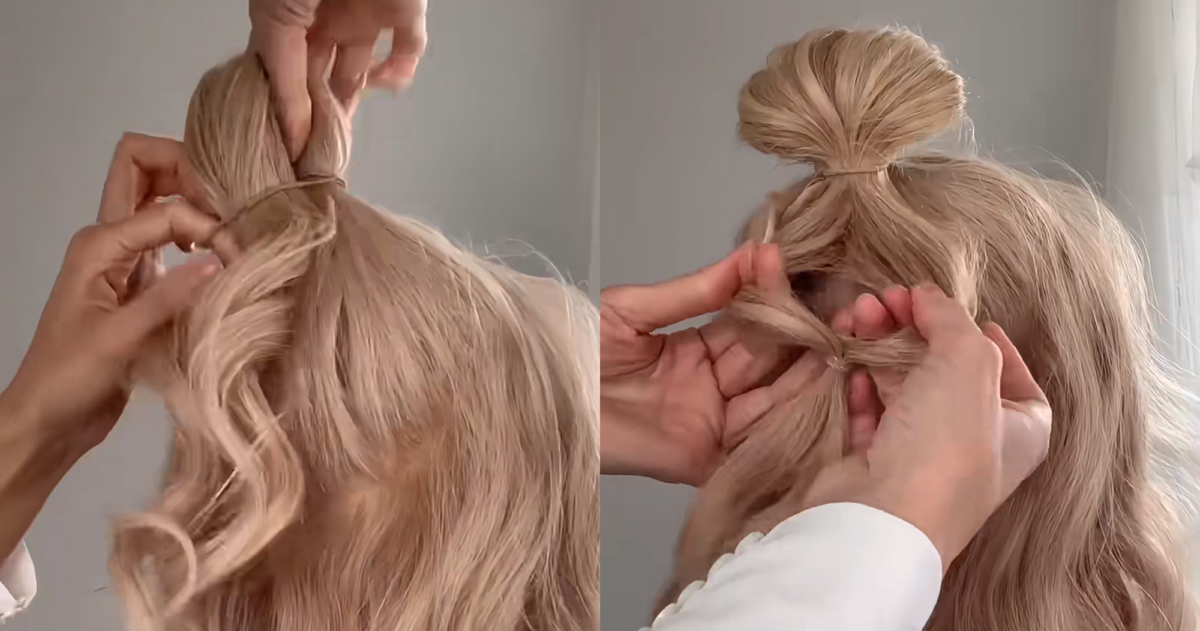 乍看複雜的Rosé同款「蛋捲髮包頭」其實步驟簡單易懂,在家也能輕鬆完成唷!首先將頭髮分成上下兩區,將上放的頭髮綁成一個馬尾但最後不要完全的拉出,留下一個小包,接著將留下的髮尾扎上皮筋掏出一個洞,往上套住剛剛的包頭,這個步驟可以讓包頭更加立體有澎度。