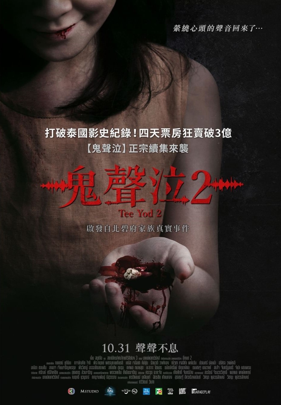 啟發自泰國北碧府家族真實事件的恐怖片《鬼聲泣》正宗續集來了!《鬼聲泣2》泰國上映直接六天票房狂賣破4億,打破泰國影史創下超高紀錄,第二集電影加入全新角色挑戰恐懼巔峰。劇情講述妍恩死後三年,無論家人怎麼勸說,大哥亞克依然持續追捕殘害妹妹的黑衣女鬼,他從報紙上看到了神祕的死亡事件,動身前往調查。與此同時,大姊妍德即將結婚,與家人等待著亞克歸來參加婚禮,他們不知道的是,有個不速之客將迫使他們再度面對三年前的恐懼…。