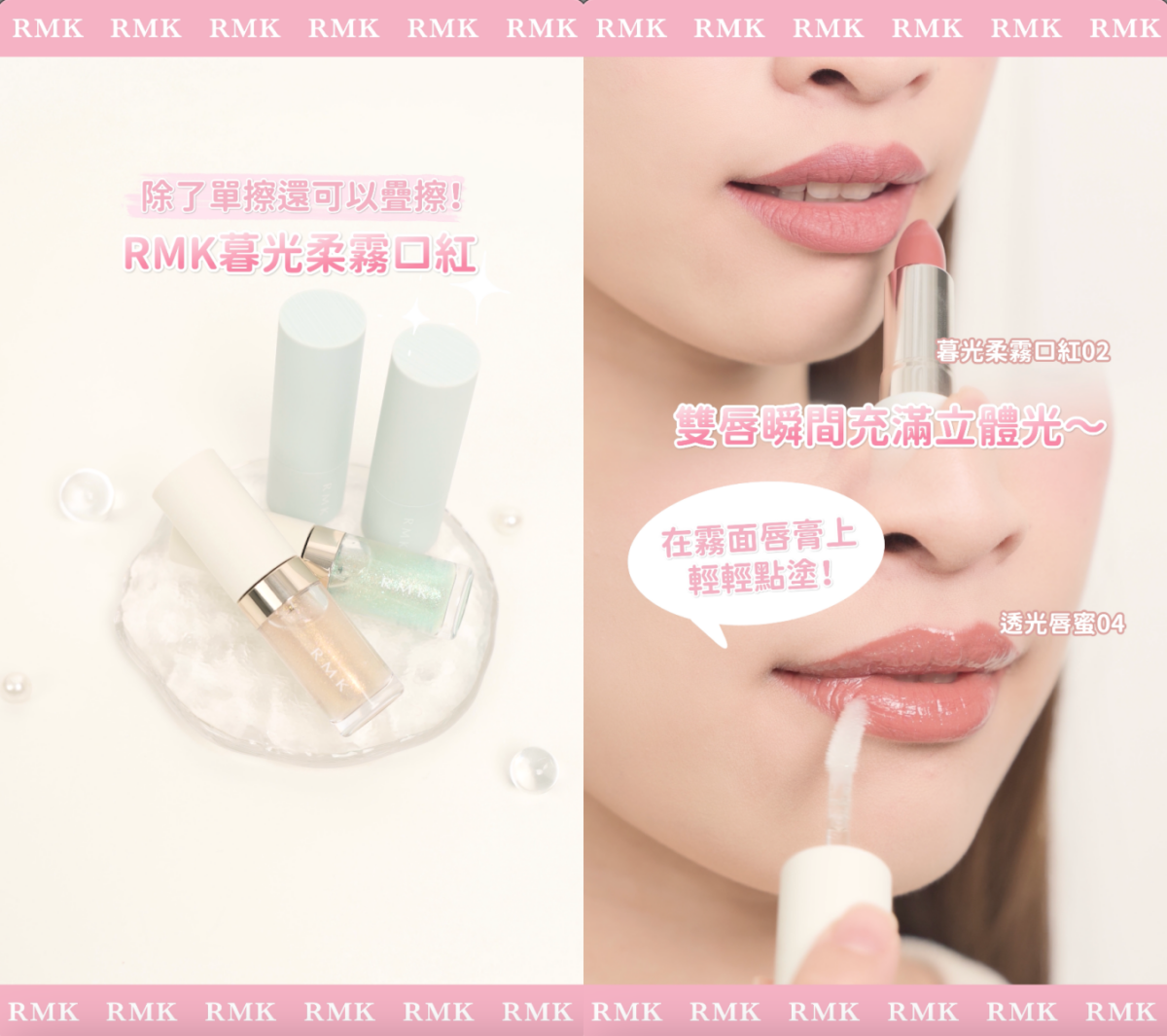 一轉眼2025就要到來了!年末活動一場接一場,怎能少了完美妝容讓自己閃亮登場呢~全臉妝容之中,「唇妝」絕對是決定成敗的關鍵,但現在唇妝趨勢可不只單靠顏色就能贏天下~掌握「光澤感」才能成為主角!尤其冬天嘴唇容易乾乾巴巴,沒有光澤就顯得沒精神又沒氣色,這次RMK推出的透光唇蜜系列,絕對是你秋冬唇妝清單的No.1!8種超心動色號各有魅力,無論是單擦還是疊擦,都能自由玩妝,輕鬆搞定日常到派對的所有場合!嘴唇會瞬間充滿水感光澤,保濕一整天、閃到讓人移不開視線!小編自己塗過就完全回不去了!