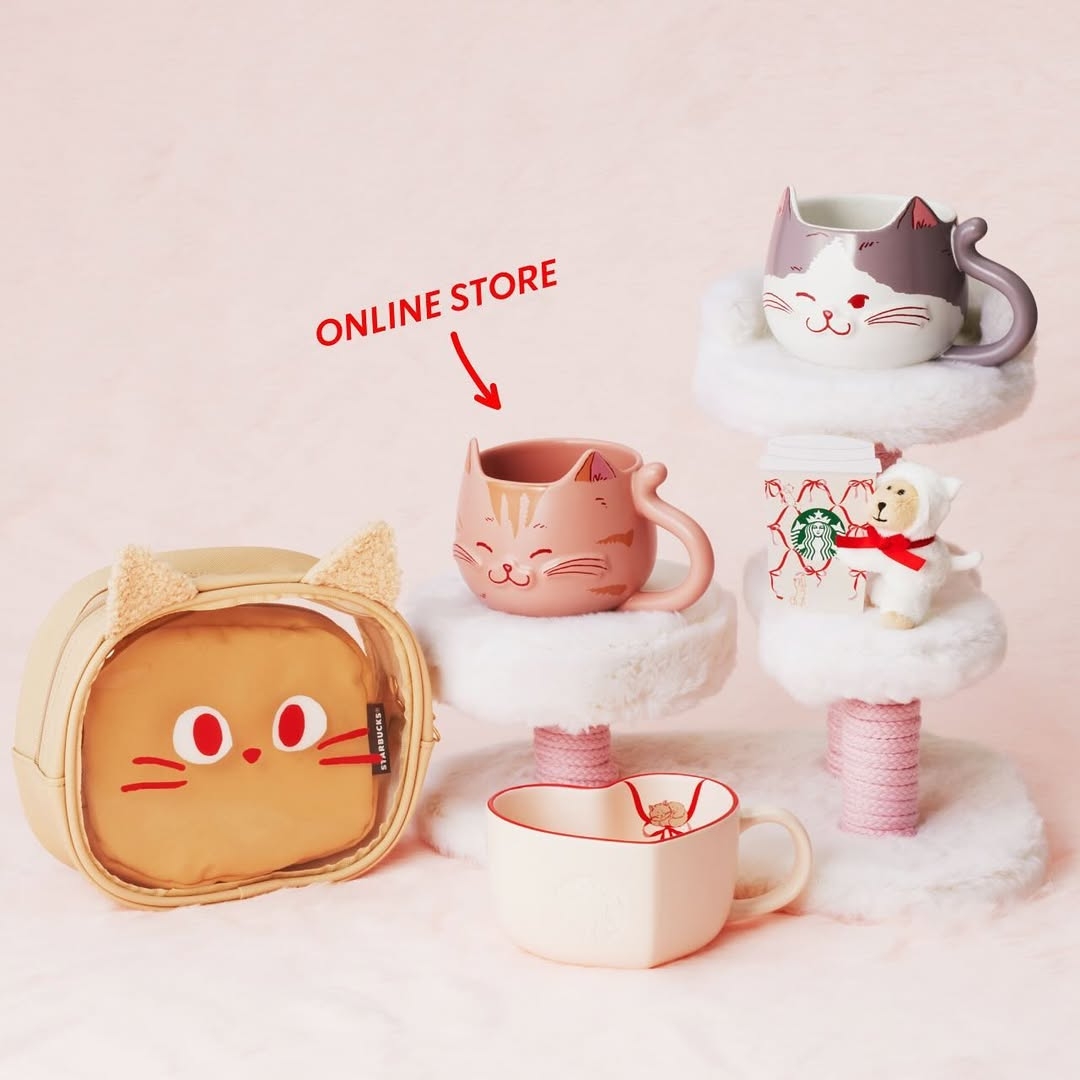 日本星巴克情人節則是推出俏皮的貓咪系列,充滿愛心搭配毛茸茸的可愛貓咪圖案,浪漫優雅又不失童趣感。其中立體貓咪馬克杯、愛心馬可杯及貓咪化妝包更是瘋搶!
