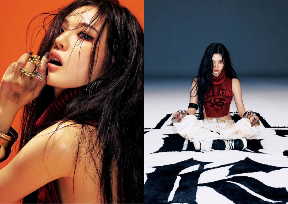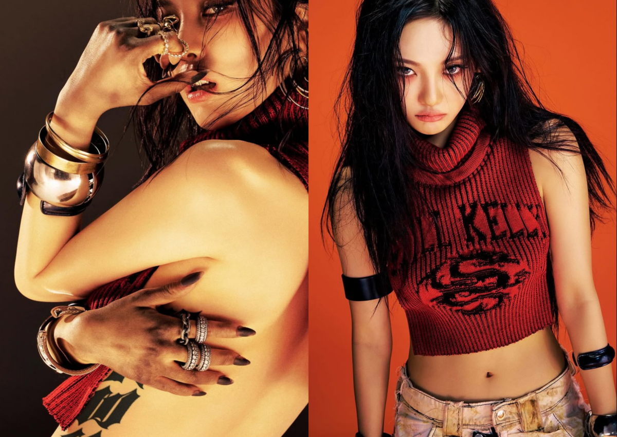 成員們這次的造型也是比以往更突破,就連平常較為保守派的寧寧,這次選擇紅色針織高領作為主要穿搭色調,仔細一看竟然身上僅用一塊布遮住胸前,露出纖細的水蛇腰,從造型到妝容、牙鑽等細節,都完美詮釋這張專輯所帶來的強列視覺感。
