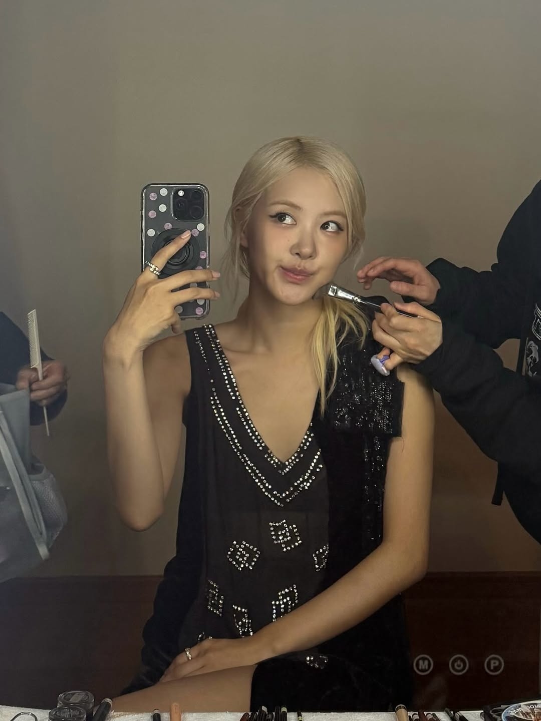 傳統的歐美妝容習慣透過打亮、修容強調立體鼻樑,營造高挺深邃的五官感。但Rosé再多次出席活動甚至專輯造型中都以「無鼻樑妝容」作為妝容重點,將鼻樑的存在感降到最低。幾乎不打亮鼻梁中段、鼻影痕跡淡到幾乎看不見、眼妝與腮紅的比重大於鼻部修容,這種處理方式刻意模糊了鼻子的立體線條,反而讓臉型比例出現新的焦點,呈現一種「童顏」、「減齡」的效果!