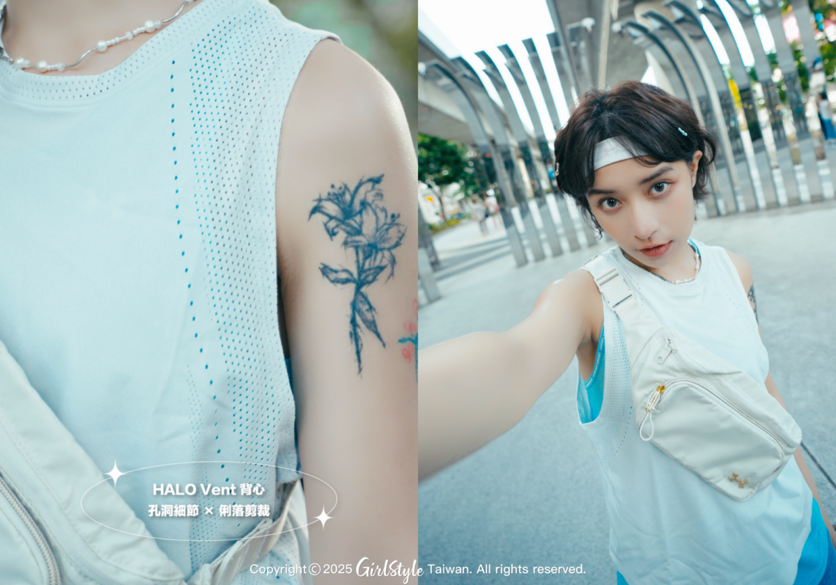 上身的HALO Vent背心高顏值又高性能,採用輕盈針織面料,柔軟舒適,鏤孔設計增強關鍵部位的透氣度,搭配排汗速乾機能,讓你在高溫多雨的台灣或高強度活動後依舊清爽。寬鬆袖窿設計讓運動更有靈活度,行走或坐下時也都更顯俐落~