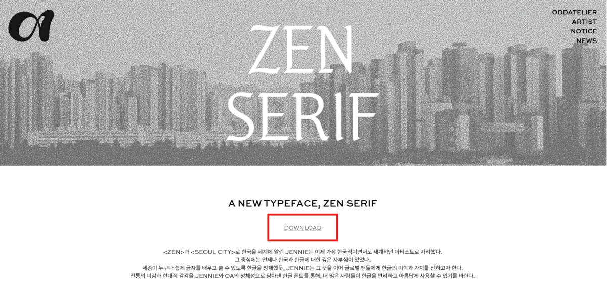 先進入官網ZEN SERIF字體下載的連結,進入後點擊DOWNLOAD。