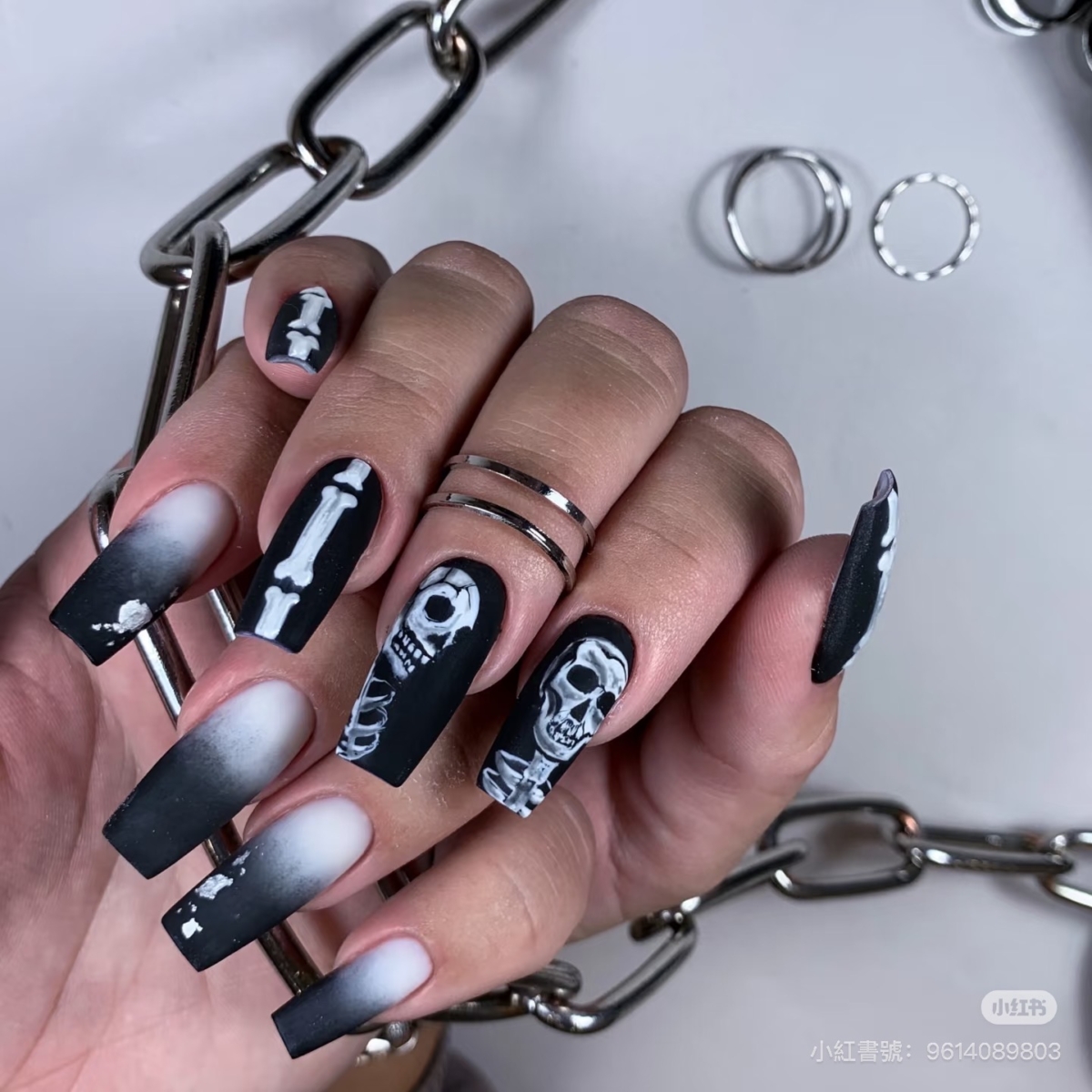 膽小者請勿嘗試!骷髏元素就是要將萬聖節的驚悚感發揮到極致,基底通常呈現黑色,在甲面上直接將骷髏元素完美複製,不論是追求超有張力的立體感或是日常也能駕馭的手繪平面,都像是行走的暗黑藝術品,適合追求極致細節、欣賞暗黑美學的你~