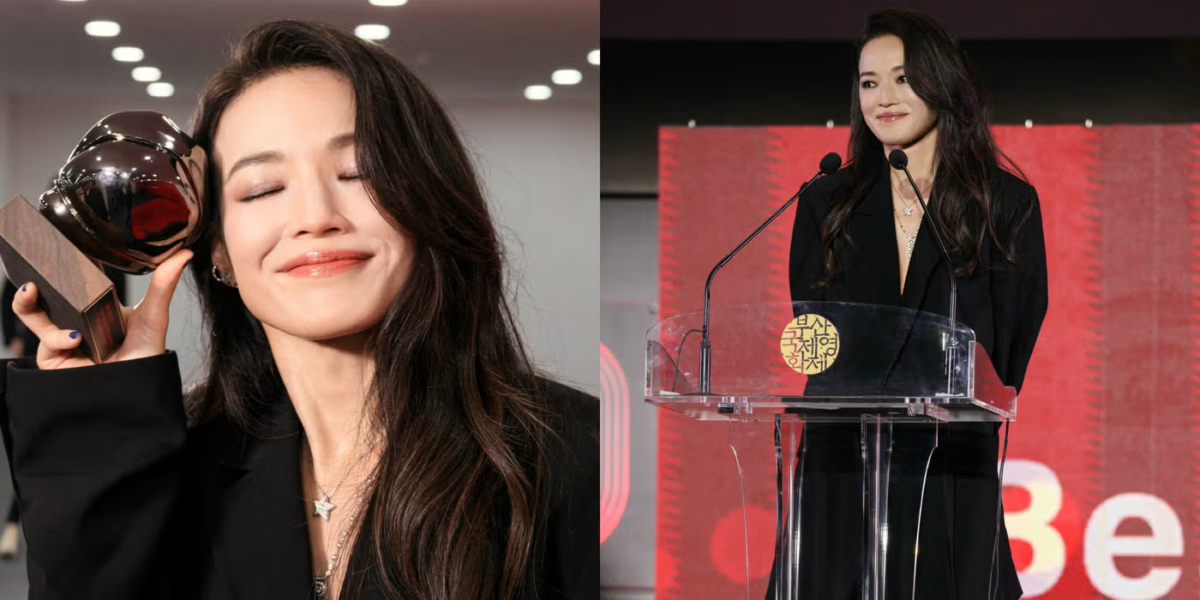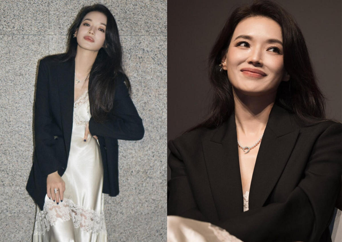 舒淇在釜山國際影展 Netflix 原創影集《回魂計》全球首映會的造型,身穿一襲白色絲緞光澤蕾絲長洋裝搭配黑色寬肩西裝外套,選擇 TASAKI 珍珠珠寶作為點綴,加以鏤空星星、牛角圖騰的新設計款,整體造型既慵懶時髦、性感又不失霸氣感,是編輯私心最愛的一套造型!