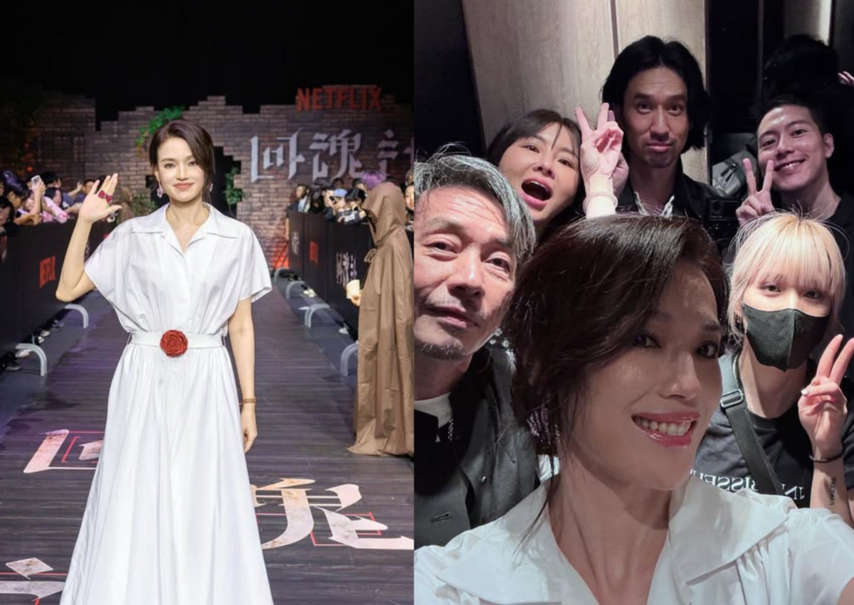 舒淇出席 Netflix 《回魂計》全球發布之夜,以一襲白色開衩長裙現身,優雅俐落的剪裁線條很是浪漫,腰間綴有紅玫瑰裝飾,成為整身穿搭亮點,選擇 配戴 Cindy Chao 四季系列楓葉耳環與緞帶戒指。