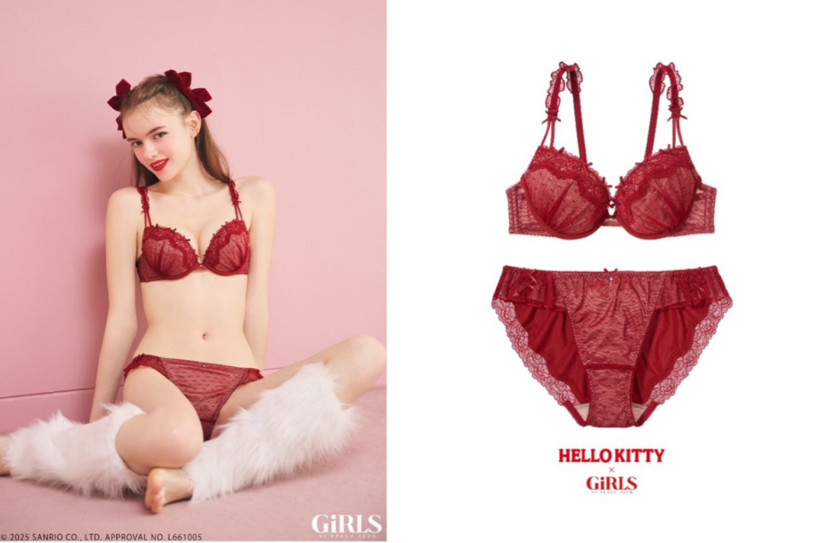 PEACH JOHN的姊妹品牌 GiRLS by PEACH JOHN,將於2025年10月22日(三)在PEACH JOHN官網及全台門市推出風靡全球的三麗鷗明星『HELLO KITTY』聯名系列商品。充滿HELLO KITTY可愛魅力的經典設計,在復古氛圍中融入少女氣息的4款限定商品。只有在這裡才能入手的特別單品!本次系列共推出4款商品,包含內衣褲3款、居家服1款。